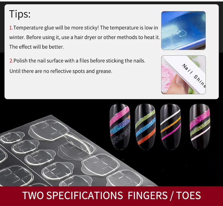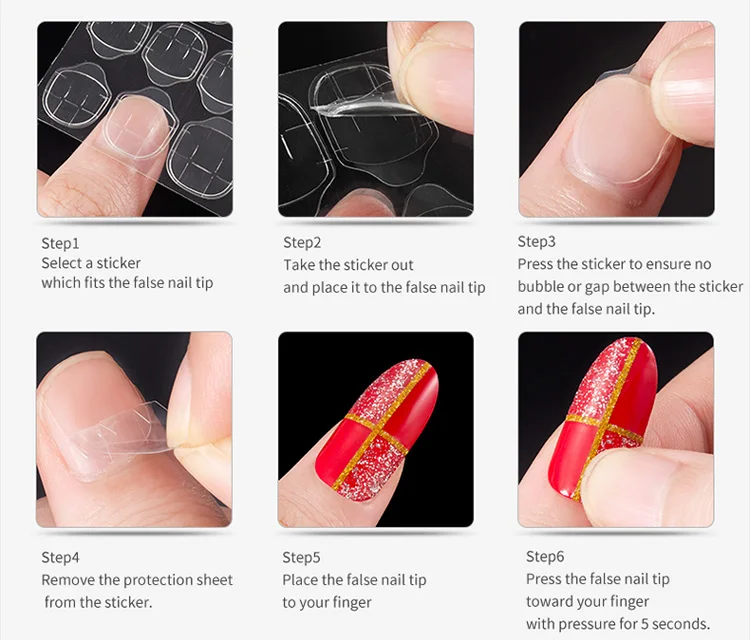 Easy to use, apply the false nail on your real nail directly with the adhesive tips.